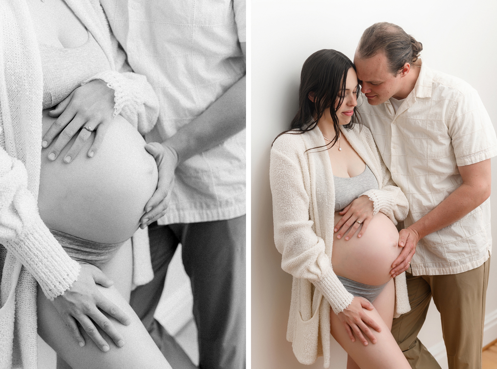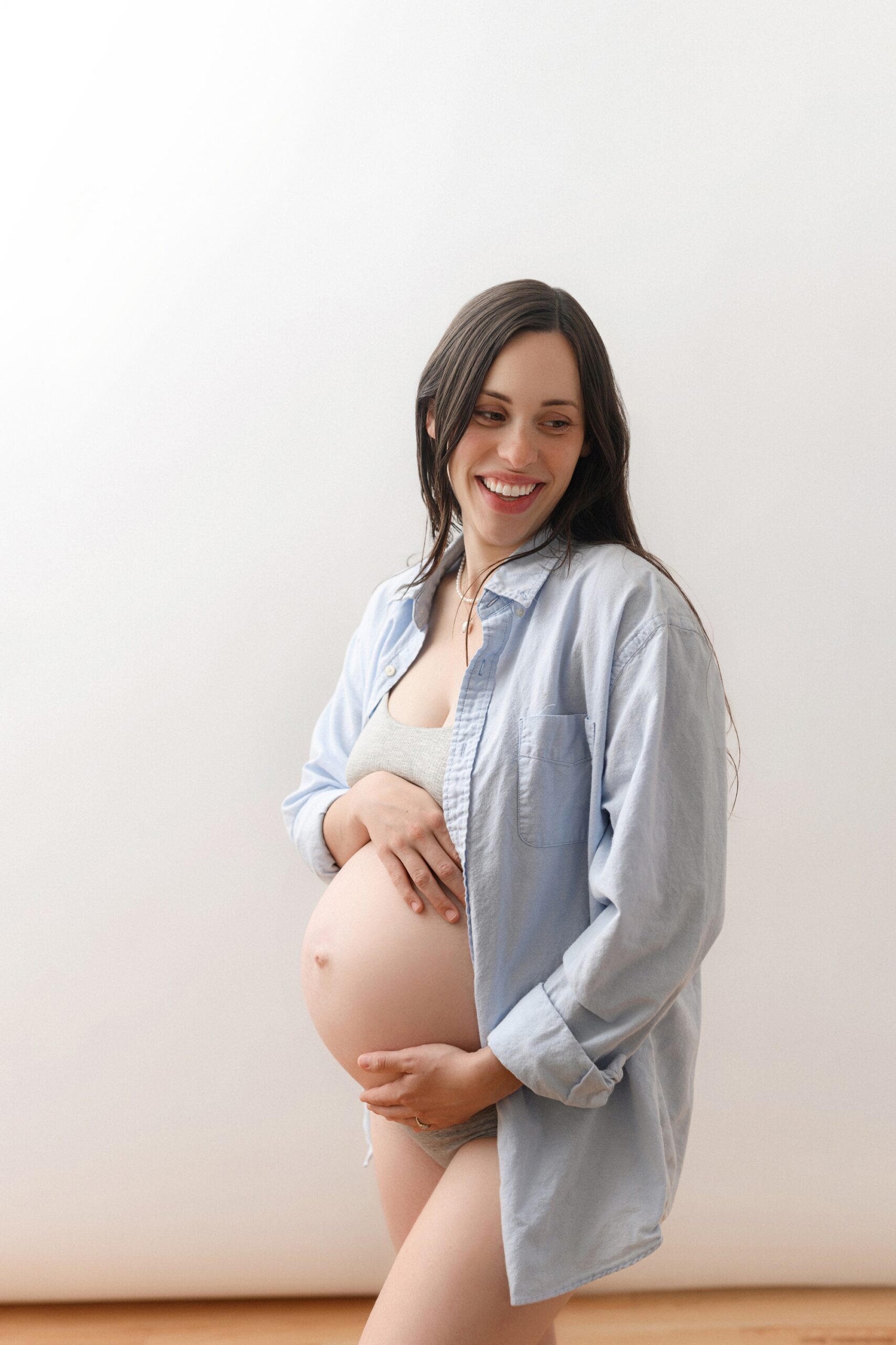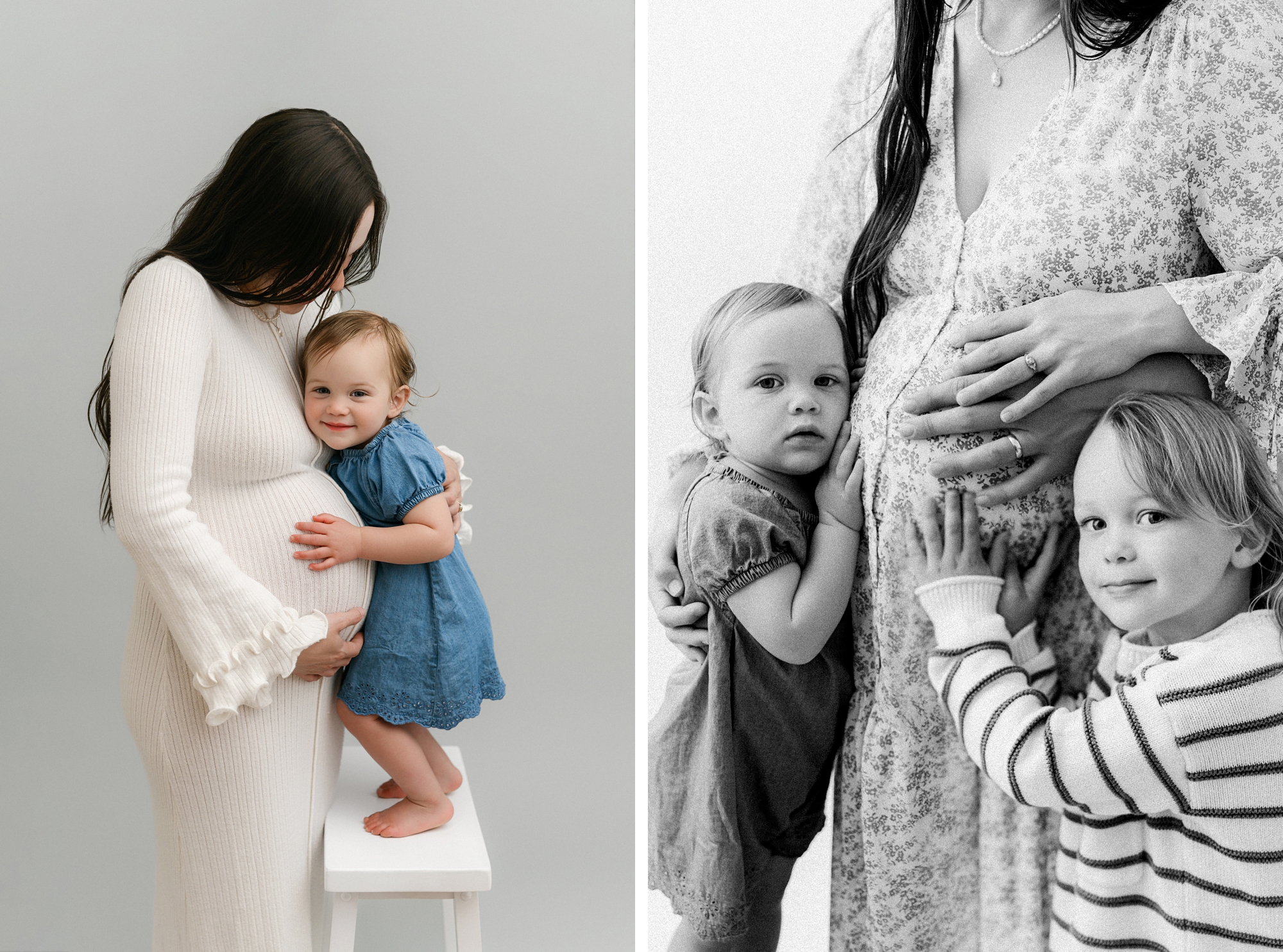 Studio maternity sessions offer the beautiful, clean light you want without depending on the sun. I work exclusively with studio lighting, meaning every portrait feels soft, bright, and natural… no matter what the weather is doing outside.