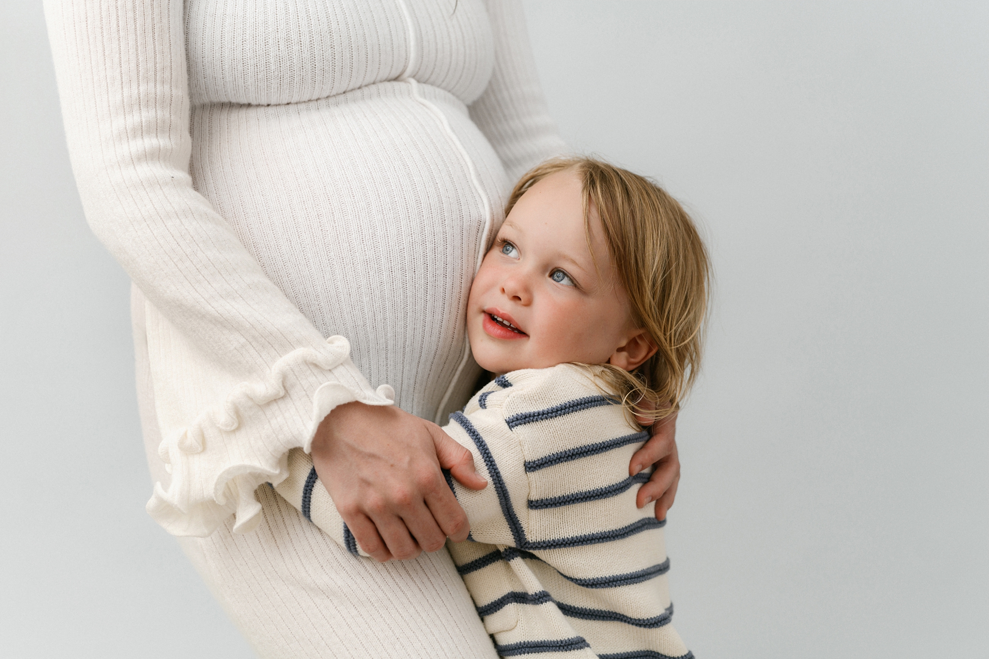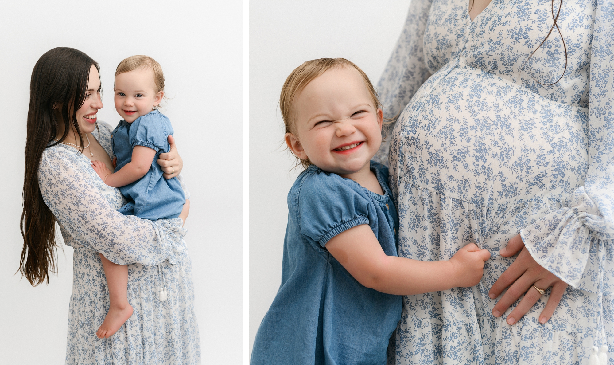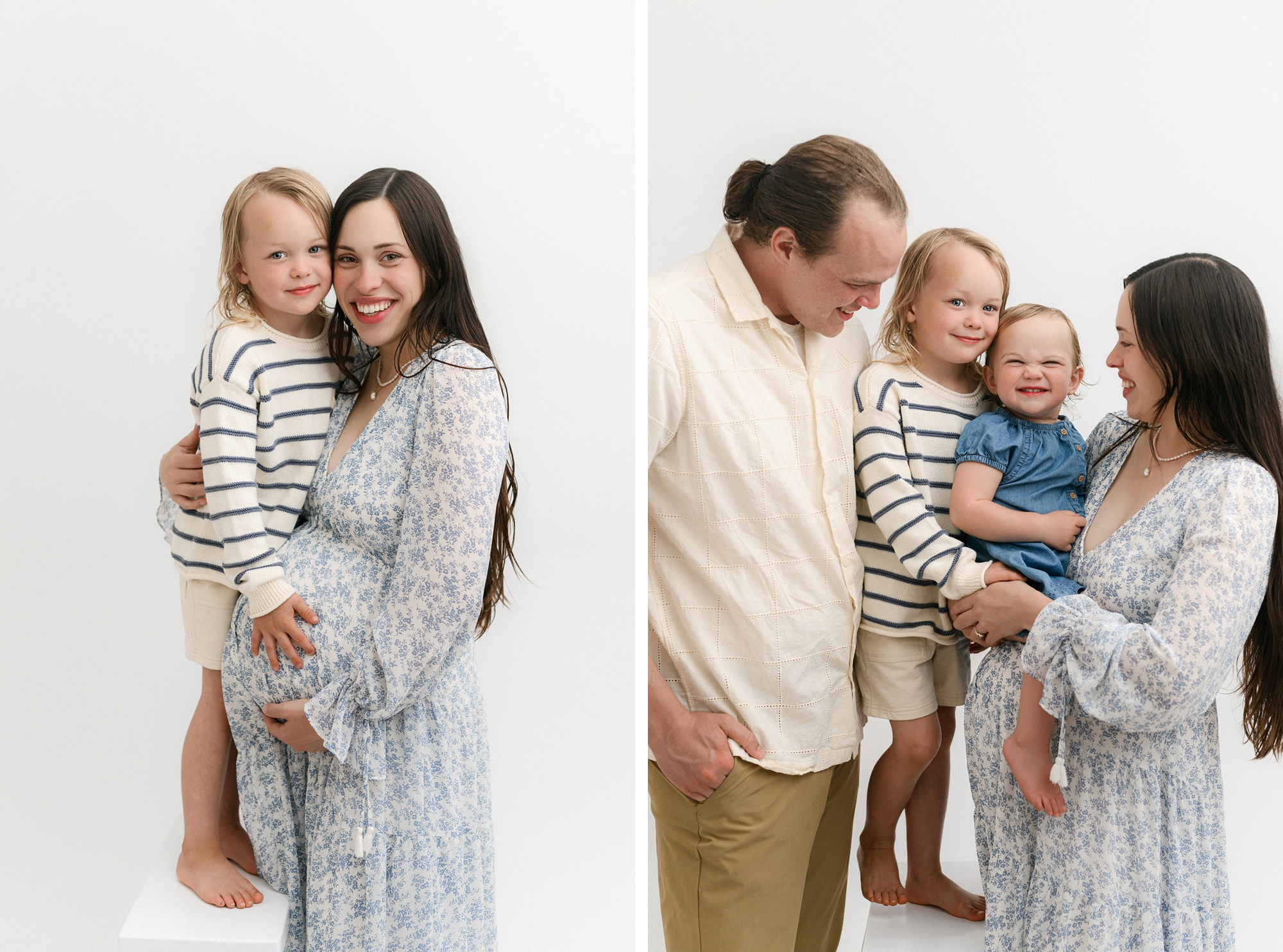 Studio maternity sessions offer the beautiful, clean light you want without depending on the sun. I work exclusively with studio lighting, meaning every portrait feels soft, bright, and natural… no matter what the weather is doing outside.